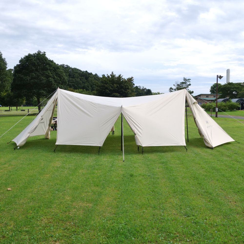 ※設営時には別途ポール・ペグのご用意が必要です。(写真のポールは撮影用の当社備品です)
