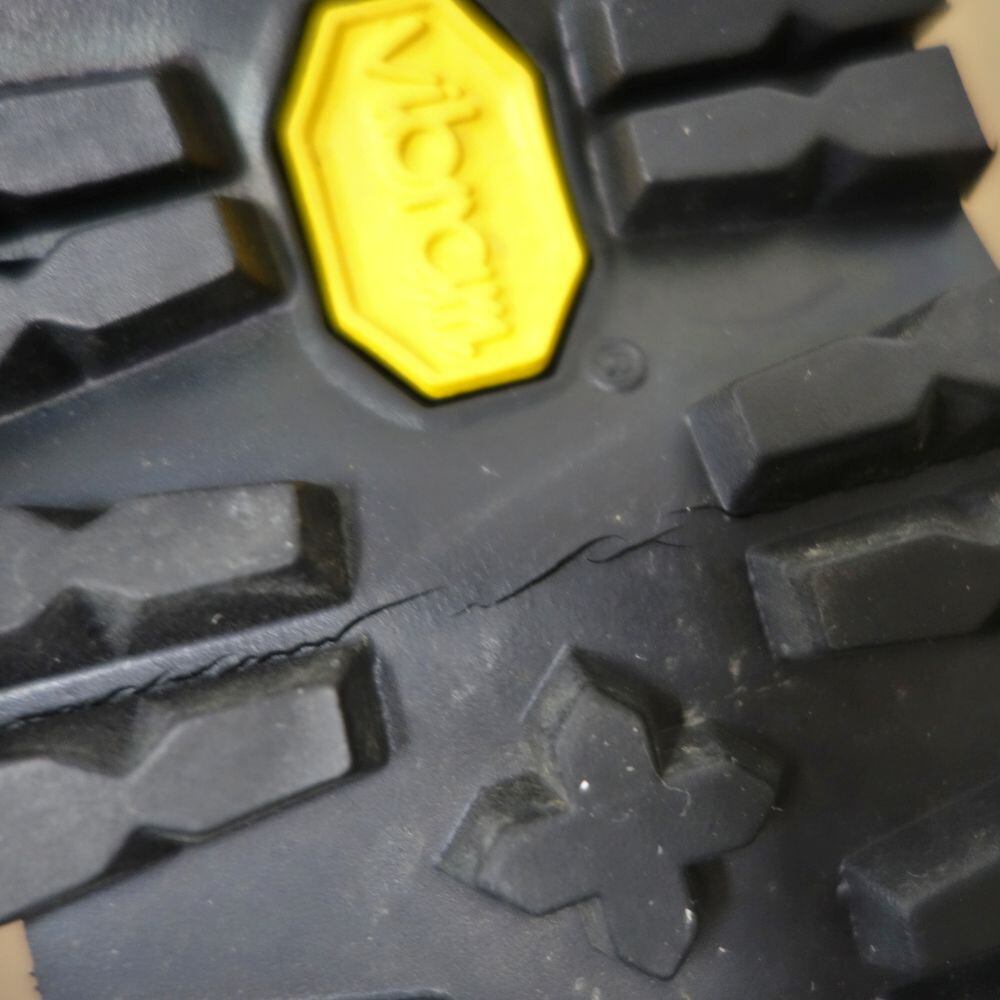 ※左足のかかと側ソールにヒビ割れがございます。