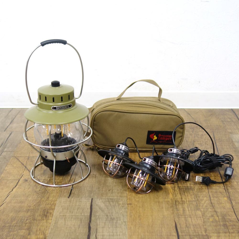 ・BAREBONESの「レイルロードランタンLED」と「エジソンストリングライトLED」・「オレゴニアンキャンパー ケース」の3点セットです♪