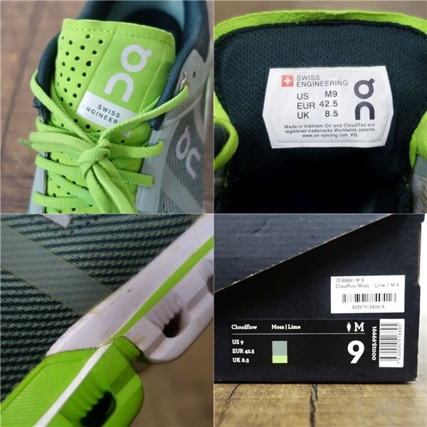 オン On Cloudflow US9 クラウドフロー Moss Lime ランニングシューズ 靴 シューズ スニーカー アウトドア
