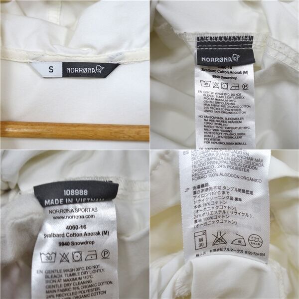 ノローナ NORRONA Svalbard Cotton Anorak メンズS スヴァルバール コットン アノラック ウェア アウトドア cf10ms-rk26y06934