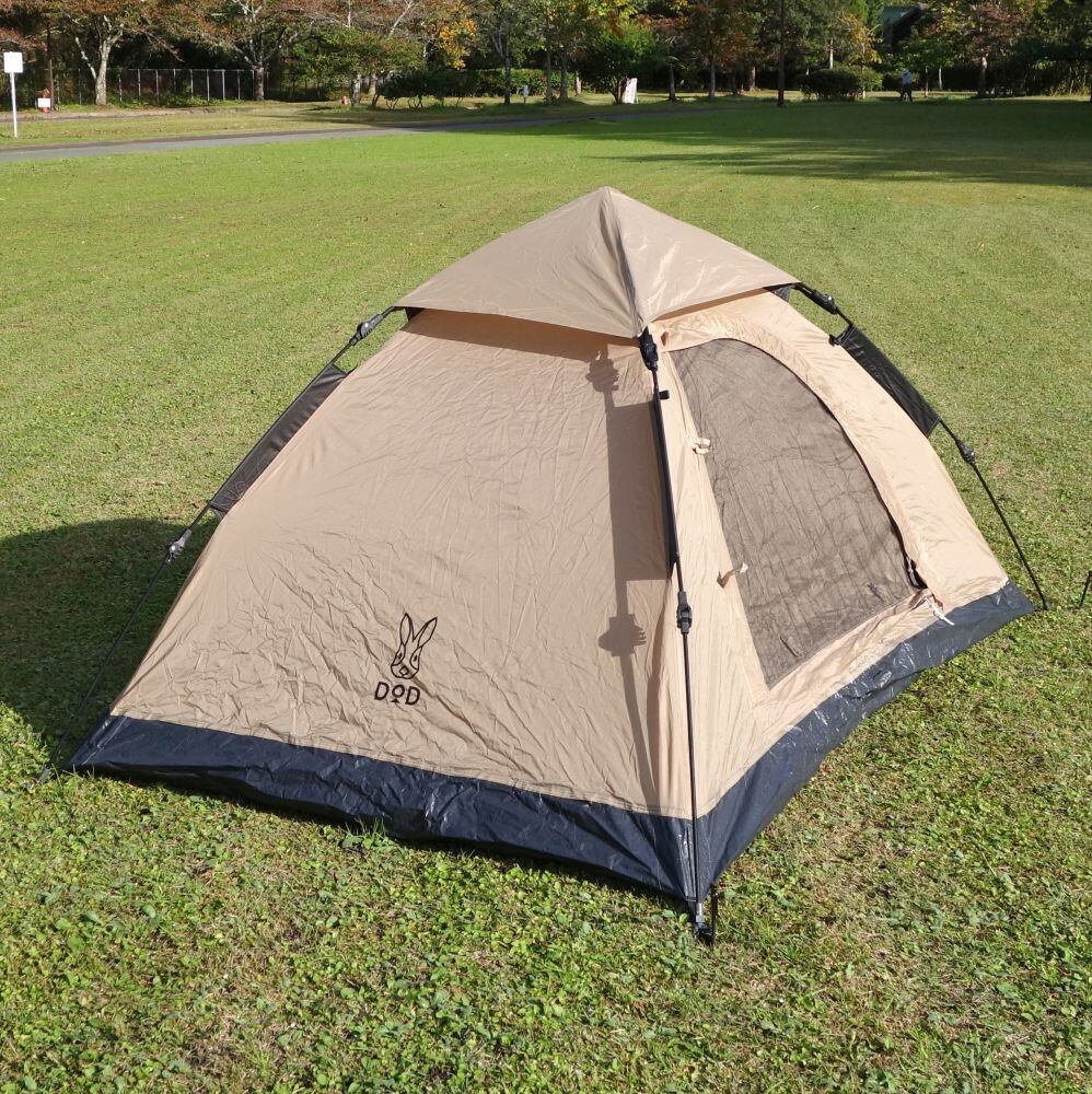 美品 ディーオーディー DOD ワンタッチテント T2-629-TN ソロ 2人用 簡単 テント キャンプ アウトドア cf10de-rk26y07060