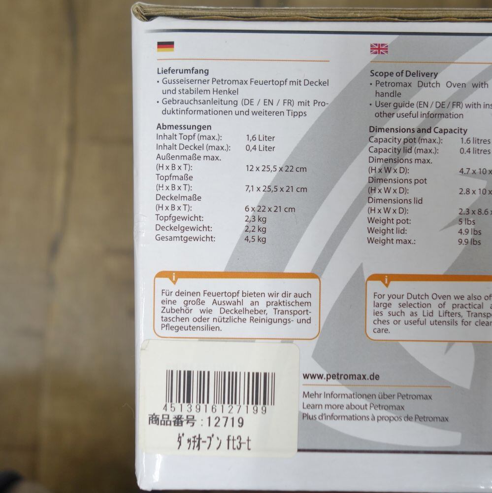 ペトロマックス Petromax ダッチオーブン ft3-t アイアン 鋳鉄 鍋 キャンプ バーベキュー アウトドア cf12me-rk26y07435