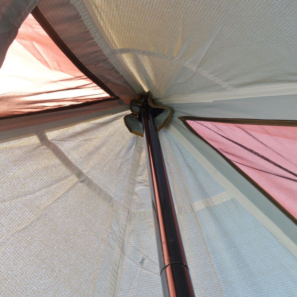 【付属品:メインポール×1・張り出し用ポール×1・設営ガイド・ペグ17本・張り綱・収納ケース】